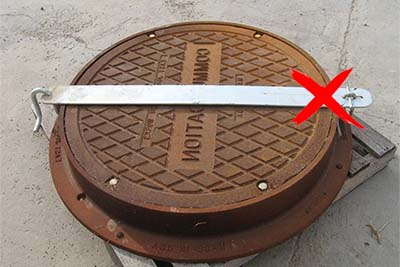 To protect the manhole and prevent it from being opened by simply a manhole cover hook, conventionally, people like to use the manhole cover lock, as shown in below picture.