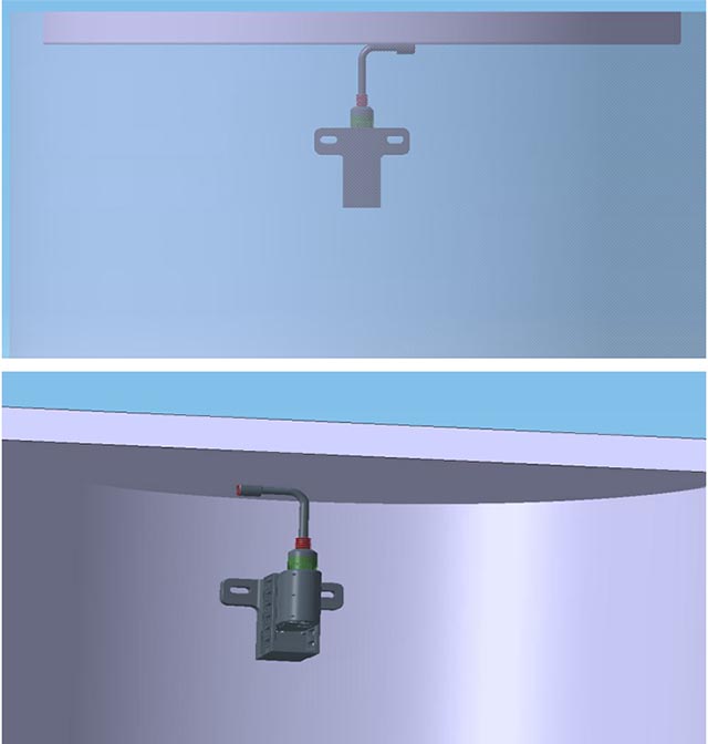 After the manhole cover is placed on it, the sensor is bent over, indicating the manhole is in "closed" status.